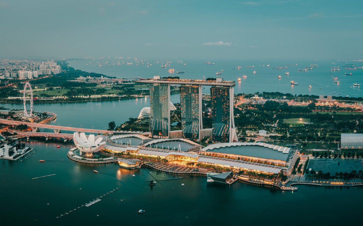 Skyscrapers mirror the water, the ArtScience Museum blooms like a lotus, and the Merlion stands as a national icon.