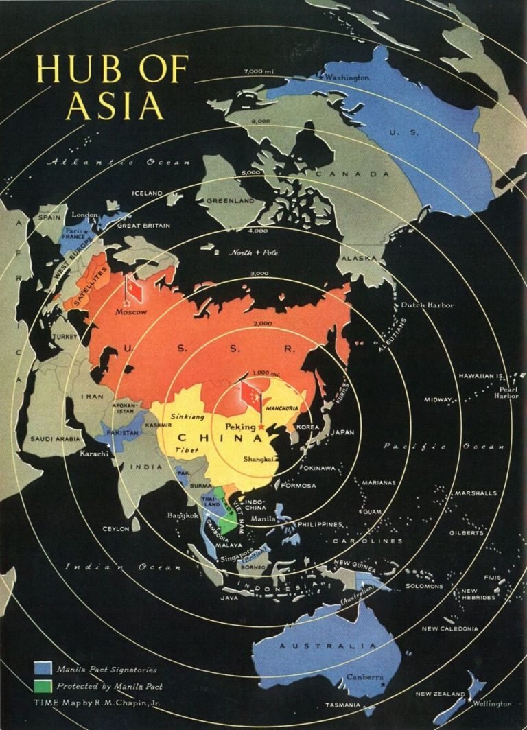 Cold War map illustrating proxy conflicts across Asia